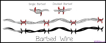 A person or animal trying to pass over barbed wire will suffer discomfort and possibly injury. Barbed fencing requires only fence posts, wire and fixing devices such as staples. It is is simple construct and quick to erect, even by an unskilled person.